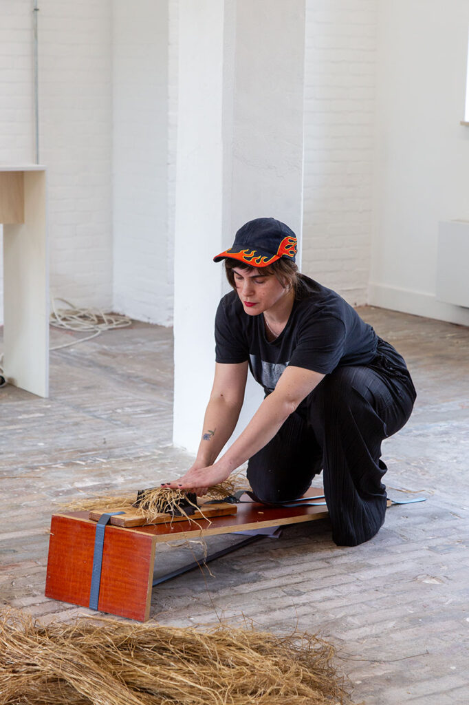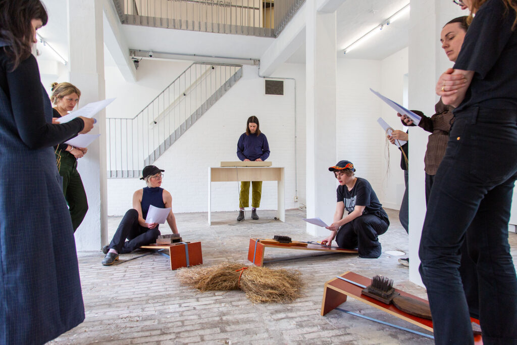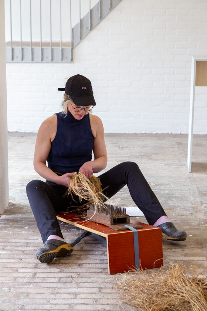This third and final chapter was brought forth by the soft, combing gestures of heckling flax to separate longer fibers from the coarser ones, the last stage before it can be spun into a yarn. Sitting around a heckling comb was once a perfect occasion to share stories and gossip, something the Dutch saying ‘to pull someone over the heckle’ hints at. Our heckling work was supported by a melody composed by Bergur Anderson and words by Karen Brodine through her poem “Woman Sitting at the Machine, Thinking”.