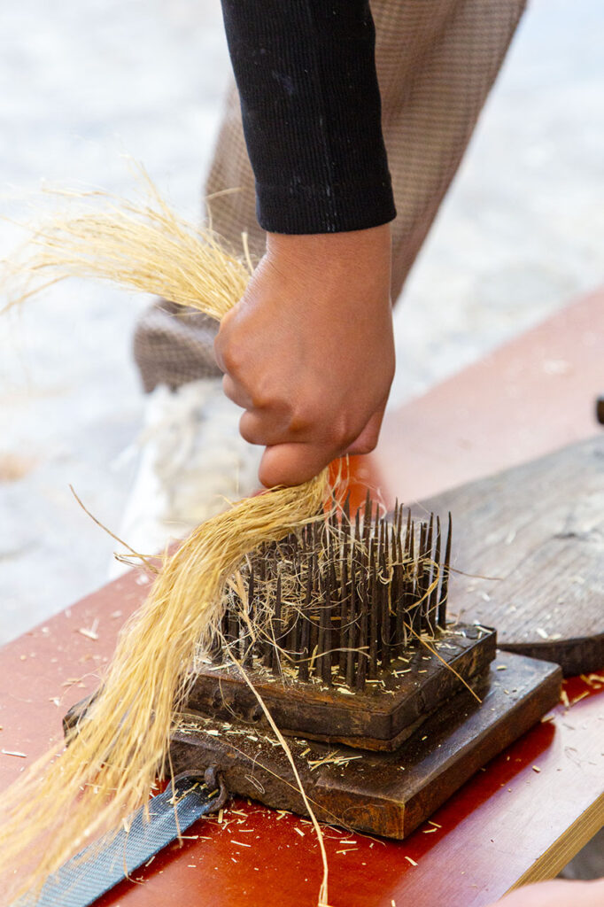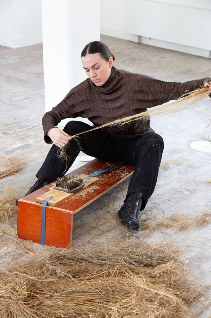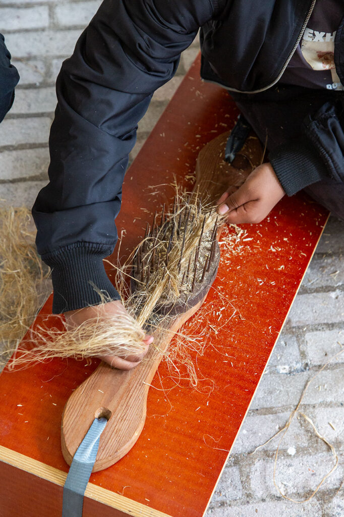 Practicing with our hands and voices, we explored collective singing and embodied work rhythms set by plant fibers.